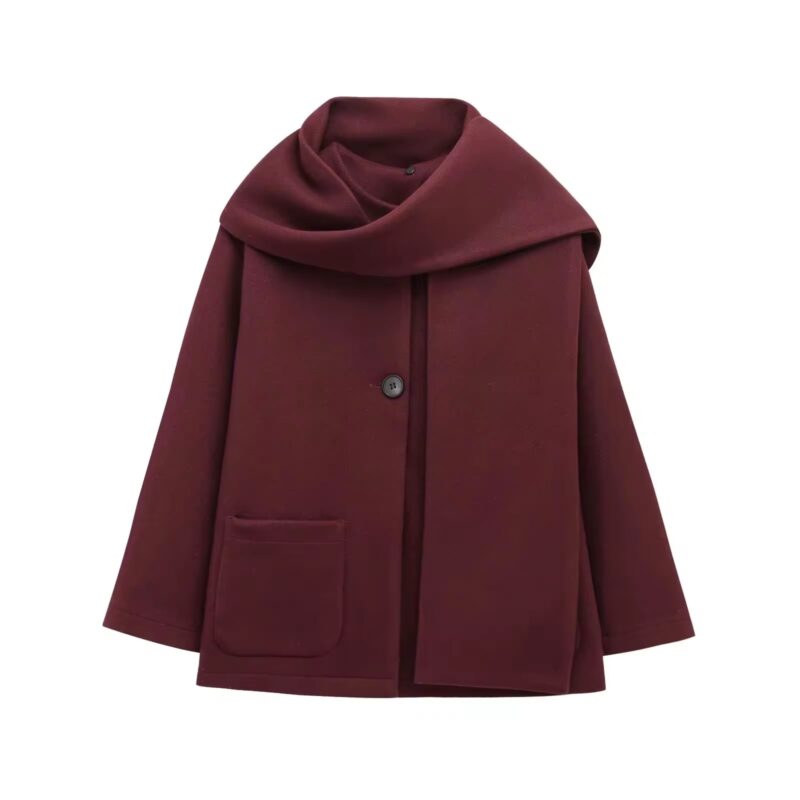Burgundy Drape Wool Coat